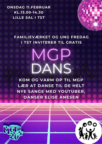 Familieværket og ung fredag i tst inviterer til gratis MGP DANS med danser Elise Arnesen.Kom og vær med til at varme op til MGP og lær at danse til de helt nye sange.